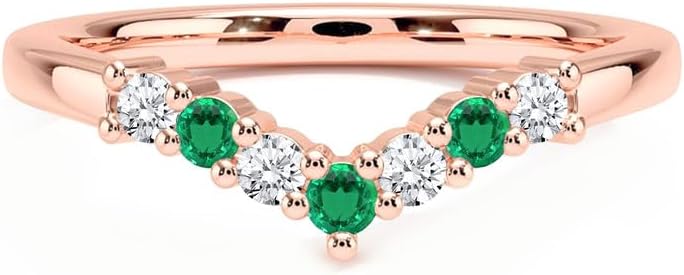 This V Shape Wedding Anniversary Band Crafted in 925 Sterling Silver, available in 14K White, Yellow and Rose Gold Plating. Round Cut simulated Emerald & Diamond set in prong setting.