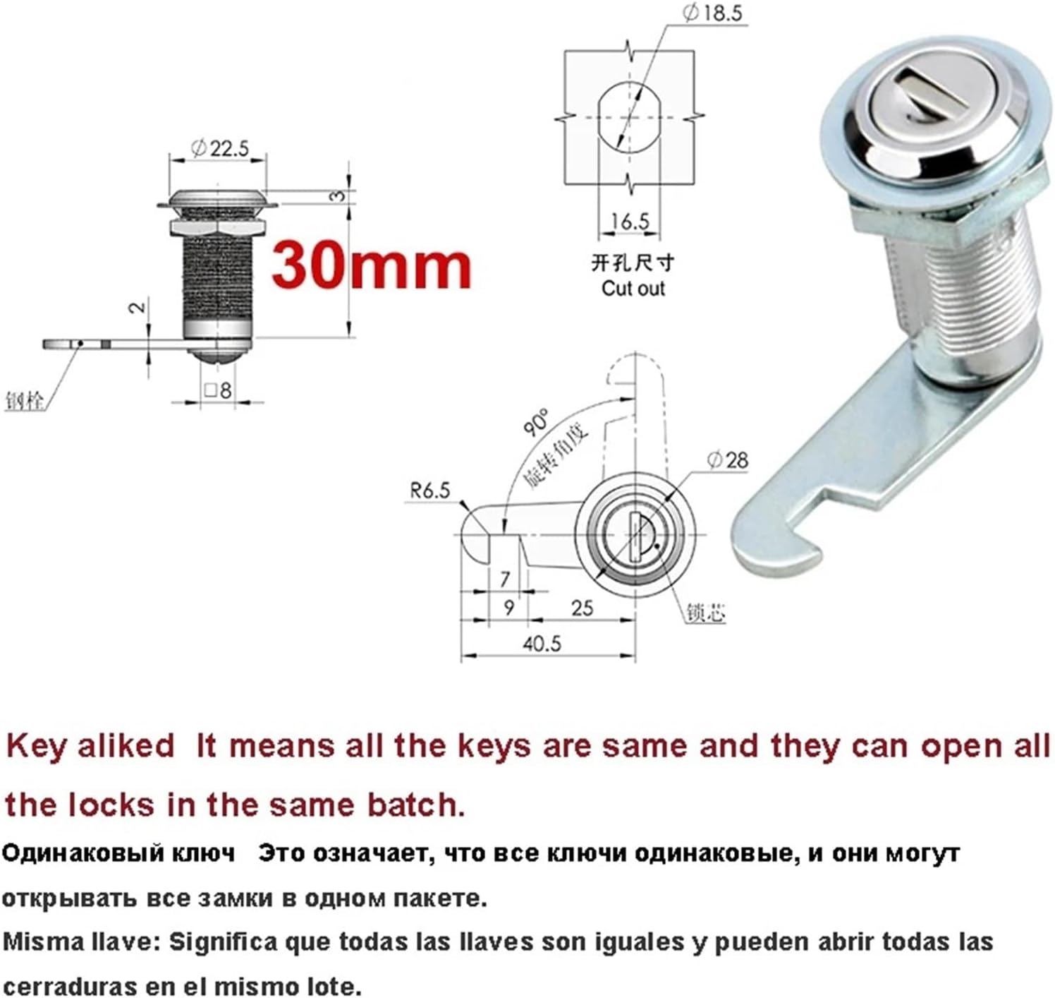Cabinet Hardware / LocksName: Cam Lock with Water Proof 16 20 30mm for Outdoor Mailbox File Cabinet Tool Box Locker Furniture Hardware MX06 GItem:MX06Lock Type:Flat KeyKey Type:Flat KeyMaterial:Zinc AlloyFinished: Chrome Key Combination:Over 500 Gross Weight:80g/pcsPackage:PP BagAccessories:Lock*1pcs, Key*2pcs, Hook*1pcsApplication:Terminal equipment, electronic/metal/wooden cabinet, pay phone, underground strobe, ATM, enclosure, stander, kiosk, vending/game machine, box, locker, letter box, postal box, coffer, AD showcase, coin-op, vehicle, mail box & tools box furniture etcKeys Included : Yes<;35mmis_customized : YesSurface Finishing : ElectroplatedMaterial : Zinc AlloyModel Number : MX06Material : Zinc AlloySize : 16mm,20mm,30mmApplication : Mailbox,Cabinet,DIY Supplies : MetalworkingLock Type : Cabinet Lock