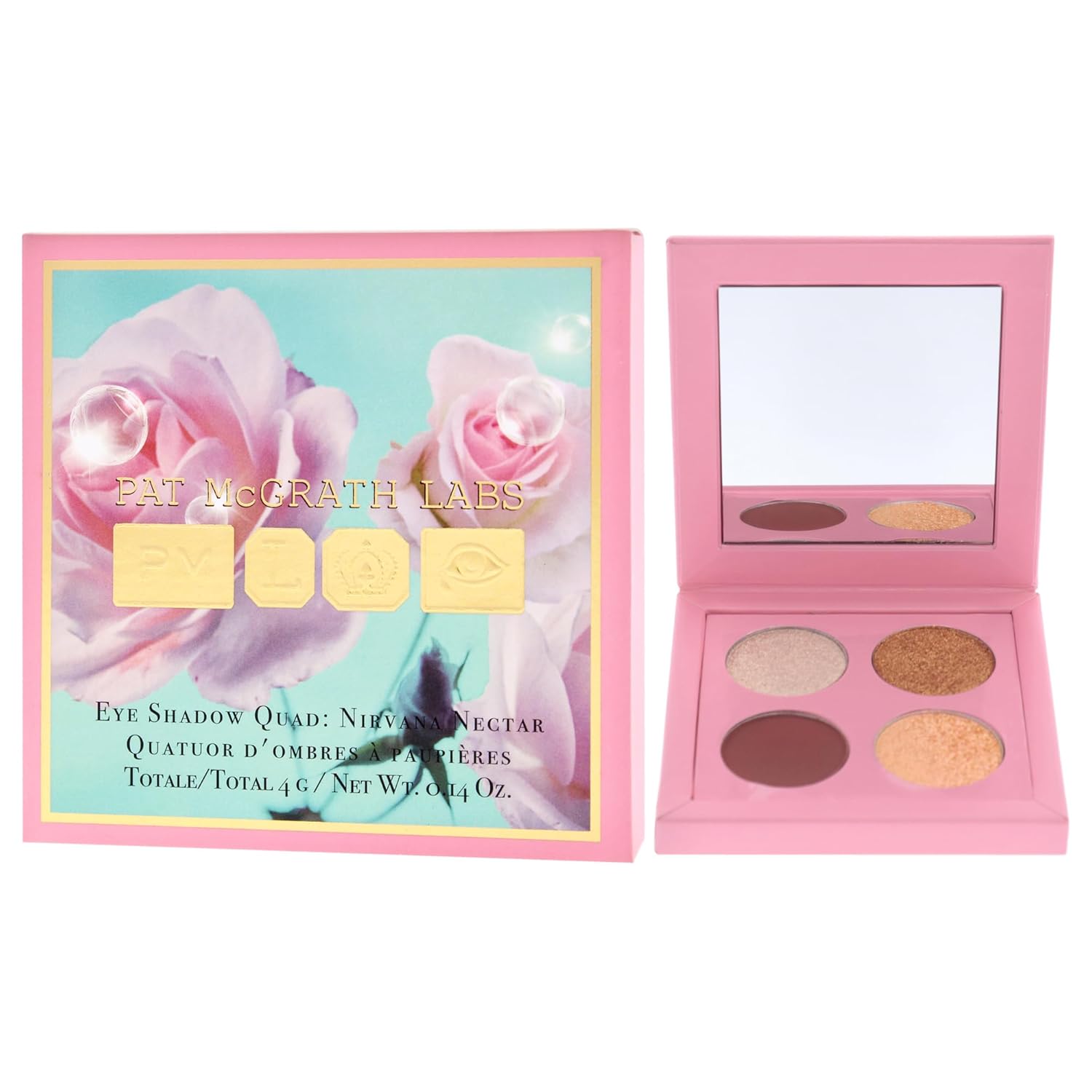 Pat McGrath Labs limited-edition eye shadow quad of universally flattering shades in three exquisite, buildable finishes matte, metallic, and shimmer. Versatile and Buildable. Intense Color Payoff. Creamy, Blendable Textures. Use Wet or Dry.