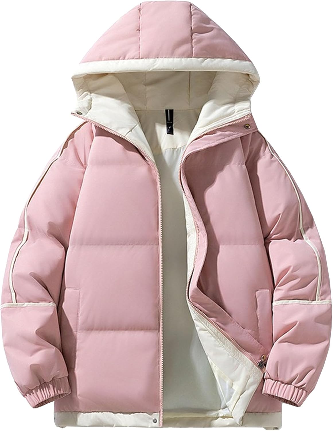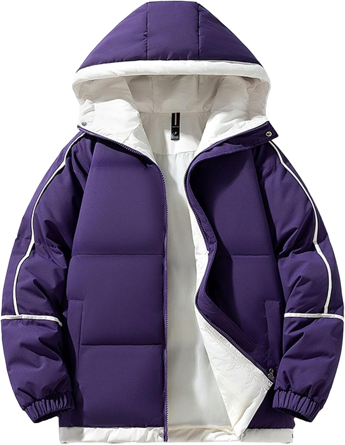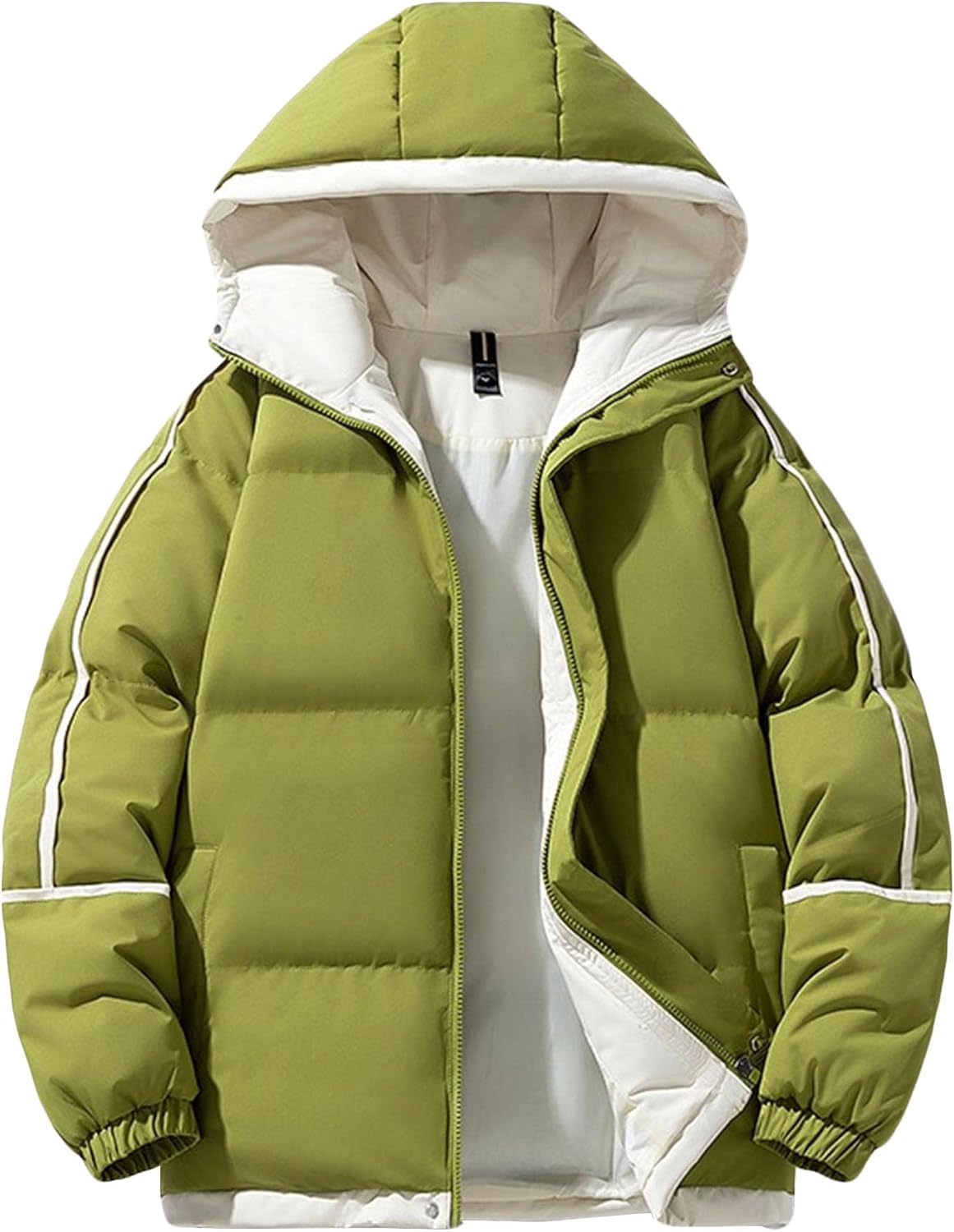 Welcome to Zylphorix shop. Things here are inexpensive and there are many styles. Most of them are simple and plain products. There is always a piece of clothing that you like.Come and have a look! ! The quilted design ensures optimal warmth retention while maintaining a sleek, modern silhouette. The full-length zipper closure allows for easy wearing and temperature regulation, while the comfortable hood provides additional protection against cold weather. White accent stripes along the sleeves add a sporty touch to this versatile outerwear piece. The jacket's insulated construction offers reliable warmth without excessive bulk, making it perfect for daily winter wear. Elastic cuffs and a drawstring hood help seal in warmth and keep the elements out. The contrasting white interior lining not only adds visual interest when the jacket is unzipped but also contributes to the overall comfort. This winter coat is ideal for casual outings, commuting, or weekend adventures in cold weather. The practical design includes a durable outer shell that stands up to regular wear while maintaining its sophisticated appearance. Q/A: Q1: How are these Cotton Jacket made? A1: Our Cotton Jacket are made of comfortable materials, which can provide more comfortable space for the wearer and are suitable for those who pursue comfort. Q2: If I want to buy it, how can I choose the size? A2: Since we are China size, which is one size smaller than the normal size, you can choose one size larger according to your own size. Note: 1.Due to the different measurement methods, the clothing error is within the normal range of 1-3cm.If you don't understand anything, you can also consult our customer service. 2.The actual color may be slightly different from the image caused by different brightness of various monitors and brightness.