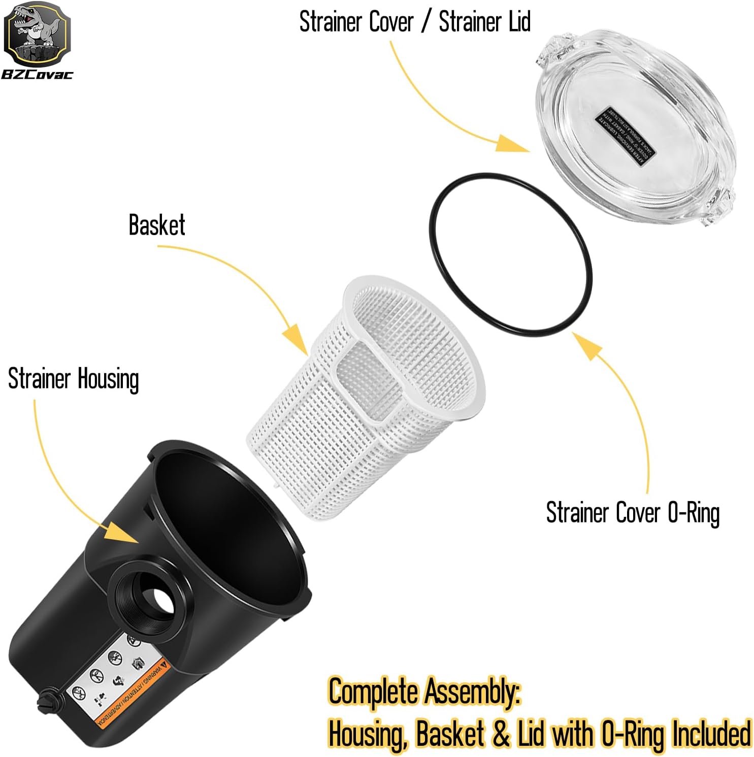 This strainer housing assembly (Model SP1516) is designed for Hayward Power-Flo LX above-ground and Power-Flo II self-priming pool pumps. Made of durable ABS material, the assembly includes the strainer housing, debris basket, see-through lid, and sealing O-ring for a complete and easy replacement. With 1.5-inch FIP inlet and 1.5-inch MIP outlet, this unit ensures a secure fit and reliable water flow. Ideal for restoring pump efficiency and prolonging equipment life.
