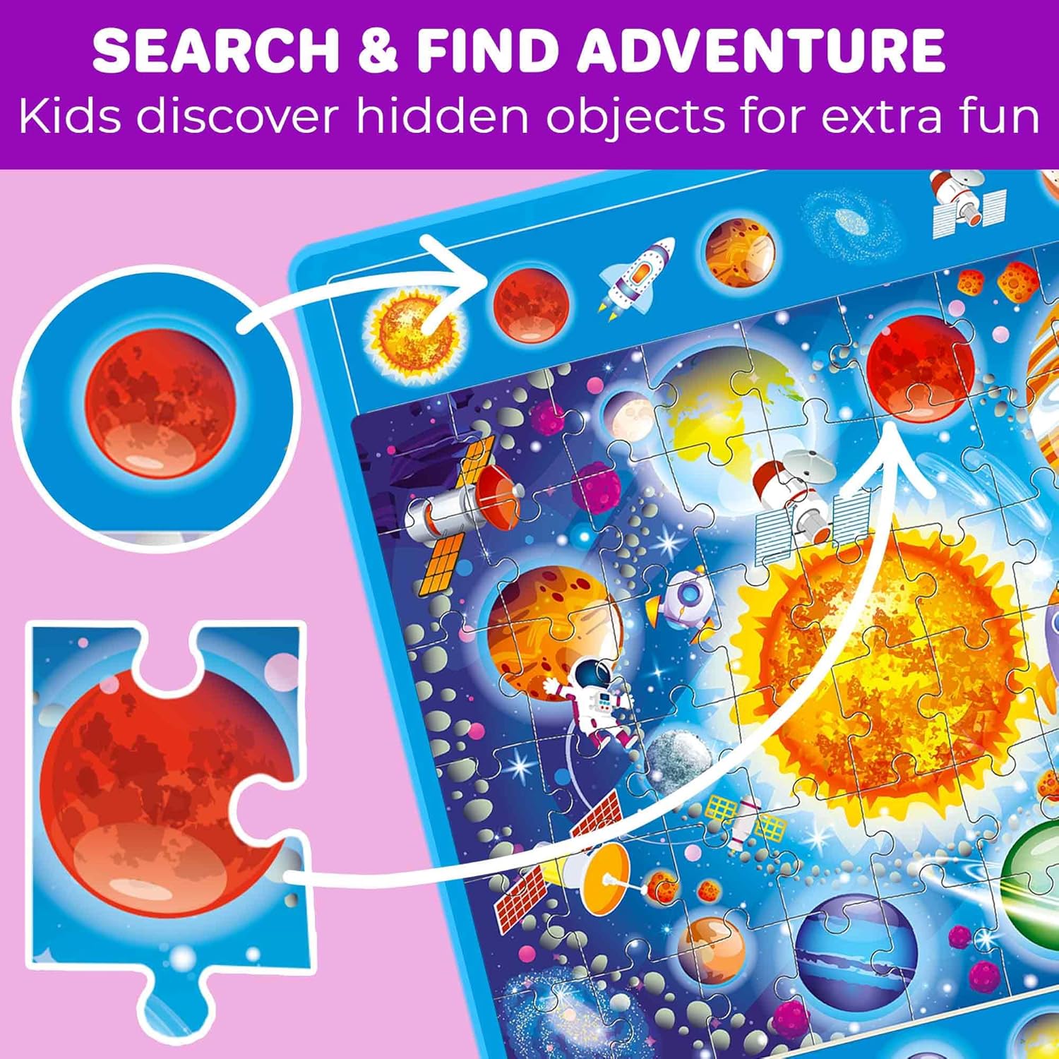 Two QUOKKA magnetic puzzle books in one set — 4 scenes total. Ocean & forest in book one, space map & polar animals in book two. Each 60-piece scene folds flat, pieces stay secure, and transforms into a search & find activity after assembly. Perfect for travel and independent play.