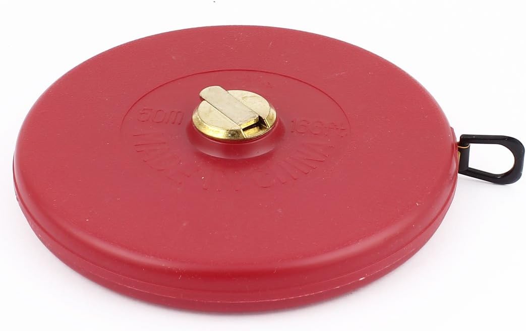 50M long, 1.4cm wide, two sides marked flute for easy readability. Yellow tap inside, red plastic case.Smooth reliable extraction and retraction mechanism.Simply pulling the measuring tape will keep the measurement locked in place. Retract the measuring tape by turning the handle at the center.Use the Tape Measure for many landscaping building and sports applications. The Measure Tape is impervious to water and crease resistant.