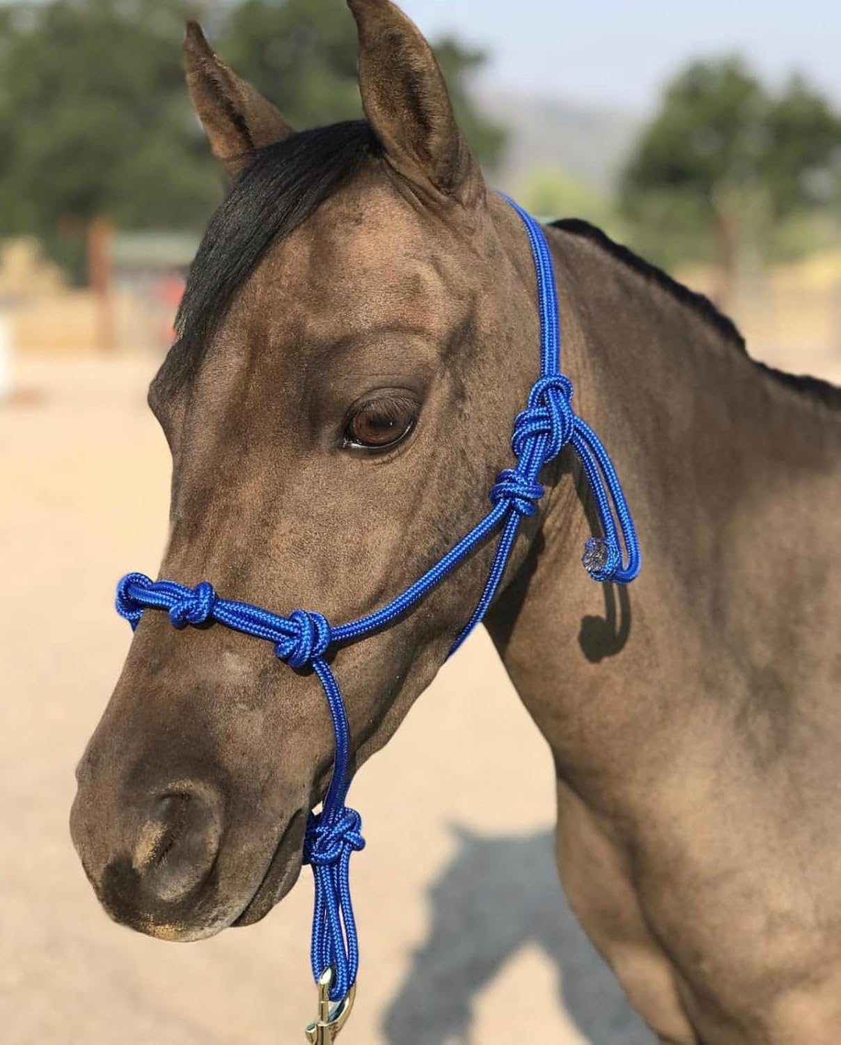 This halter designed by Star Point Horsemanship helps you cue, guide and refine your Miniature Horse/Pony to success through Groundwork, Longe Line, Liberty, Therapy & Trick Training. Enjoy the control, connection and body language enhancement of the globally sold and proven 4 knotted Miniature Horse Training Halter. Designed in 6 sizes to fit A & B class Miniatures and Shetland Ponies, teach suppleness gently without having to introduce the chain too prematurely in training. Small (26-31" Mini) 6" across the noseband knot to knot. Medium (31" - 37" Mini) - 6.5" across the noseband knot to knot. Large (37" - 42" Mini/Pony) - 7" across the noseband knot to knot.