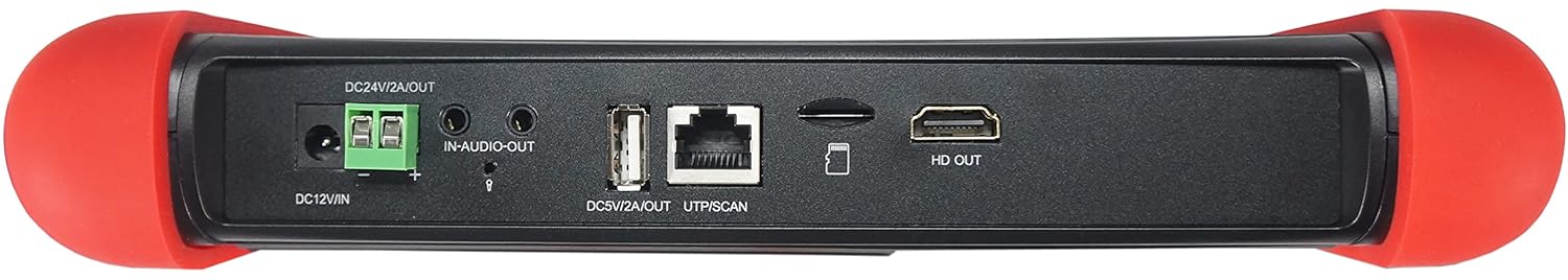 The Triplett 8174 CamView Security Camera Tester with 7" Retina touch screen (1920 x 1200 resolution), 16 hour battery life, and advanced capabilities is ideal for CCTV system and network cabling installation and maintenance. Featuring an 8MP TVI/8MP CVI/8MP AHD/H.265/H.264/4K camera testing with PTZ control and video transmission channel testing. HDMI input and output supports up to 1080p. Network testing includes Ping, IP scan, Port Flash, DHCP server, and Trace Route. Additional features include a Built-in Wi-Fi analyzer with 2.4G signal strength tester and hot spot generator (Chrome browser included). Dual 1000M LAN ports, to check network bandwidth, packet loss or error data. 4x Zoom to enlarge on screen image, screen snapshot, screen record, save, view, record and playback video, plus DC 24V 2A Power output and 24W, 48V DC PoE Power output / DC 12V 3A, Rapid ONVIF, TDR/RJ45 Cable Tester, UTP cable tester (Max 180M), and up to a 16hr battery life. Comes complete with Tester, Network cable tester, 12V DC 2A Adaptor, 8GB SD Card, Polymer Lithium Ion Battery (7.6V DC 7800mAh), BNC, RS485, Audio, DC power cables, safety cord and carrying case.