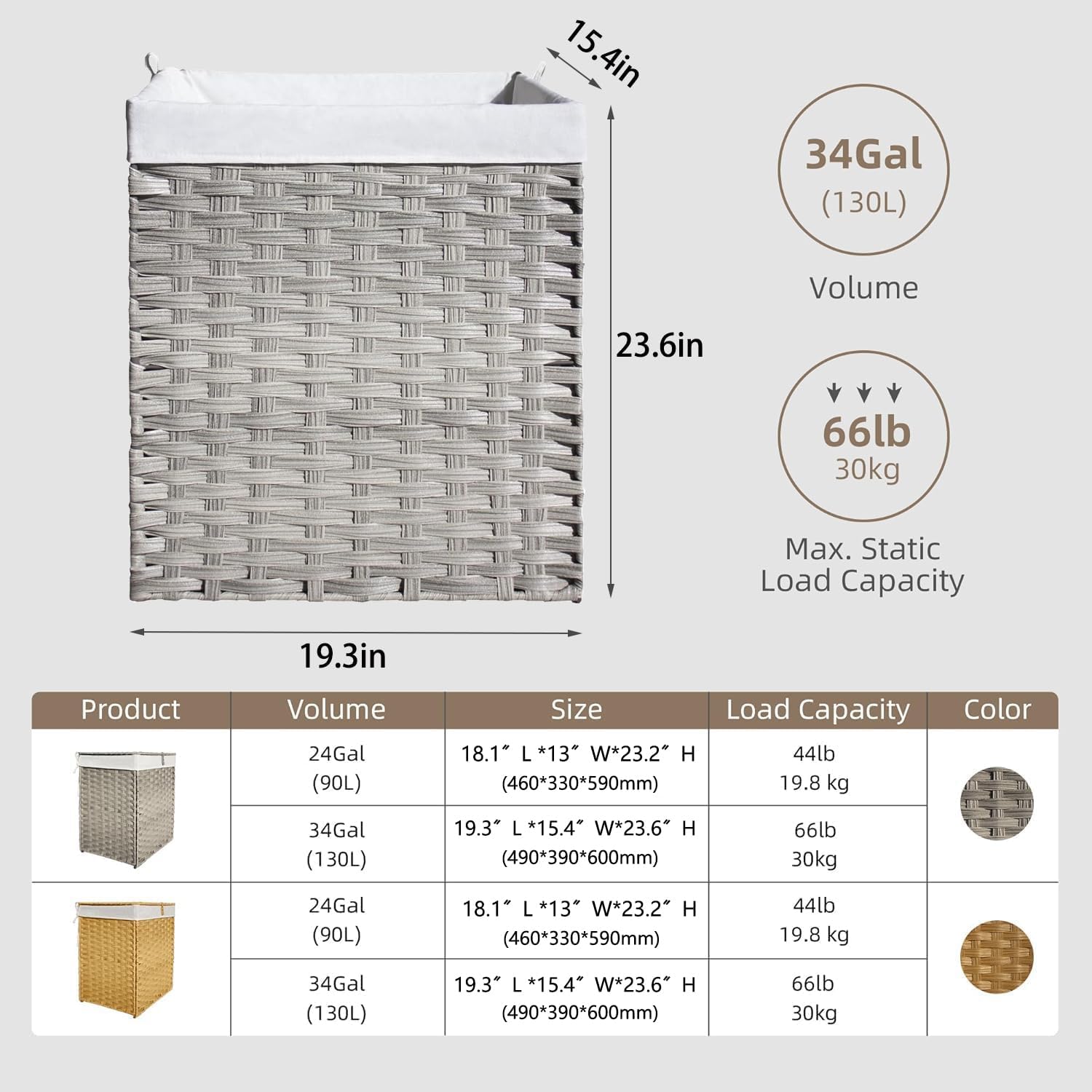 | Size | 130L(34Gal) |